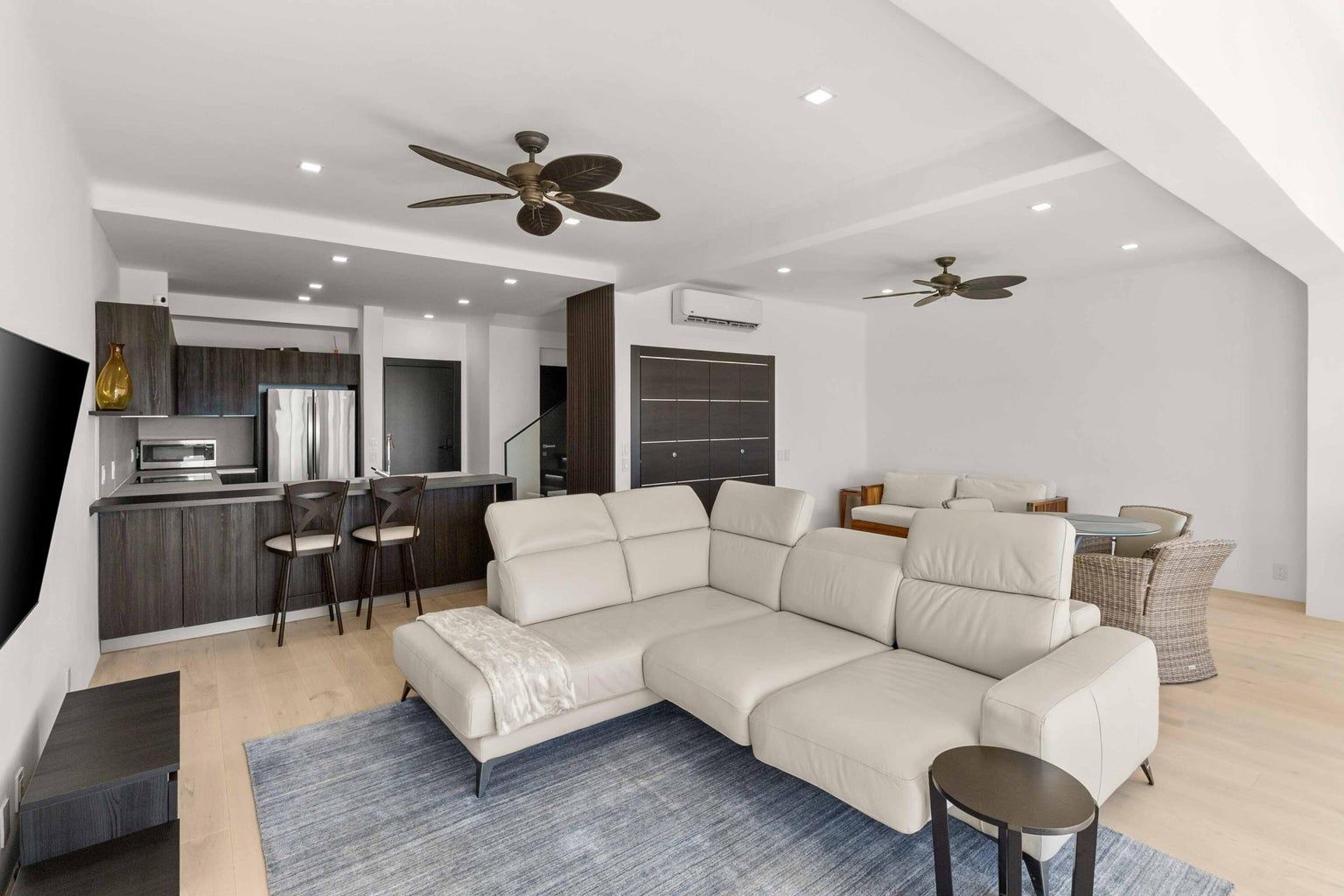 The condo has been renovated into an open concept floor plan to take advantage of the space and maximize the views. Furniture, all of the carpentry work, including kitchen, closets, vanities, shelfs, interior doors and hardwood flooring have been imported from Italy, new appliances and A/C mini splits in every room, dimmable lights throughout the property and new double pane sliding glass windows. Renovation also includes plumbing, electric and a lot of storage space within the condo. Casa del Mar owners have access to tons of amenities, such as two restaurants, pickleball and tennis courts, pools, spa, gym, bar and over 20 hectares of walkable landscape area.